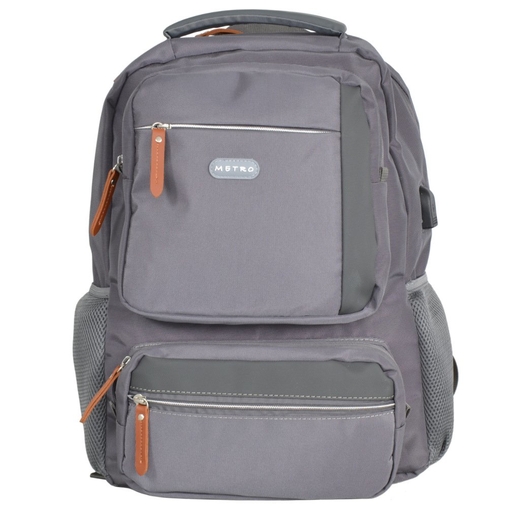 Batoh z kolekce METRO je ideálním batohem pro každodenní použití, nabízí dostatek místa pro knihy, dokumenty (A4) a notebook.Pohodlné nastavitelné ramenní popruhy v kombinaci s polstrovanými zády zajišťují maximální pohodlí při nošení. Batoh má jeden hlavní prostor, na přední straně čtyři menší kapsy a kapsy na bocích vhodné např. pro láhev, skladací deštník. Uvnitř batohu je polstrovaný úložný prostor pro notebook. Batoh je vybaven speciálním popruhem na zadní straně, díky němuž ho můžete připevnit přes výsuvné madlo kufru.Batoh je vybaven vestavěným USB nabíjecím portem na vnější straně, takže můžete snadno nabíjet svá mobilní zařízení na cestách. Jednoduše vložte svůj vlastní powerpack do vnitřní kapsy (powerpack není součástí dodávky) a pomocí dodaného USB kabelu jej připojte k portu. K nabíjení zařízení pak můžete použít vlastní nabíjecí kabel, aniž byste museli po kapsách tahat těžký powerpack. • materiál: polyester• rozměr: 43 x 34 x 20 cm• objem: 29 l• hmotnost: 0,60 kg• doporučená nosnost 8 kg• polstrovaná kapsa na notebook• nastavitelné polstrované ramenní popruhy• polstrovaná záda
