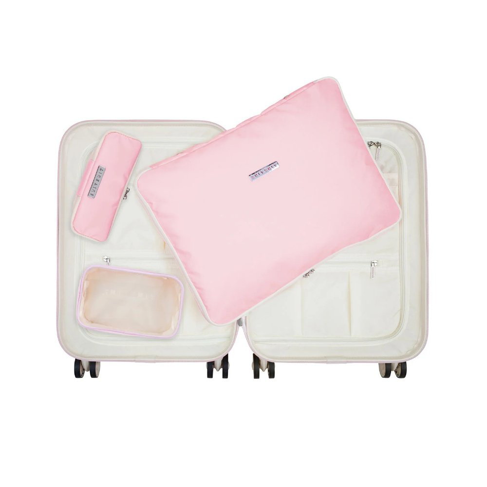 Sada obalů SUITSUIT® Perfect Packing system z kolekce Fabulous Fifties. Vytvořili jsme perfektní cestovní sadu pro naše zavazadla velikosti kabiny (S), aby jsme zajistili, že váš kufr bude vypadat krásný a čistý nejen na vnější straně, ale i uvnitř. Souprava do sebe zapadá tak dokonale, že umožňuje optimální využití prostoru uvnitř kufru. Sada Packing Cube pro příruční zavazadlo obsahuje speciálně vyvinutý organizér oděvů, průhlednou toaletní tašku; ideální k zabalení 100 ml tekutin, a malou brašnu na příslušenství. Tento organizér oblečení (45 x 33 x 4 cm) byl vytvořen speciálně pro naše příruční zavazadlo. Byl navržen tak, že když zazipujete obě strany kufru, perfektně zapadá mezi. Dvě uzavřené přihrádky poskytují ochranu vašim nejzranitelnějším položkám oděvu a minimalizují riziko pomačkání. Tento organizér vám umožní optimálně využít prostor uvnitř vašeho kufru a ušetří vám potíže s pomačkaným oblečením. Průhledná toaletní taška (22 x 7 x 13 cm) je dokonalým řešením pro nošení všech vašich kosmetických produktů, když cestujete pouze s příruční zavazadlem. Už jen letmým pohledem zjistíte, co je uvnitř vaší toaletní tašky díky průhledné přední části. Uvnitř toaletní tašky udržíte úhledně své 100 ml lahvičky s tekutinami např. při kontrole na celnici. Taška na toaletní potřeby má zapínání na zip a je vyrobena z pevného polyesteru a PVC šetrného k životnímu prostředí! S naší taškou na příslušenství (20 x 8 x 10 cm) můžete mít všechny své kabely, nabíječky a powerbanku na jednom místě. Extra síťovaná taška na vnitřní straně vám umožní odložit všechny vaše drobné doplňky, jako jsou nař. špunty do uší. Tím se ukončí všechno to frustrující tápání - což je přesně to, bez čeho se na dovolené můžeme obejít, že? Tato ideální malá taška je tak kompaktní, že se vejde do každého kufru a stejně snadno do vaší kabelky!