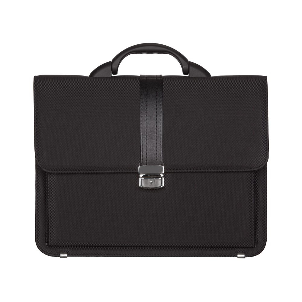 Teczka z kolekcji REAbags. W głównej komorze znajdują się trzy oddzielne przegrody przykryte klapą z zamkiem. Jedna z przegród służy jako dodatkowa kieszeń zapinana na zamek. Z przodu znajduje się kolejna mniejsza kieszeń, a z tyłu teczki kolejna kieszeń zapinana na zamek. Rączka teczki wykonana jest z PVC, a odpinany pasek na ramię z poliestru.