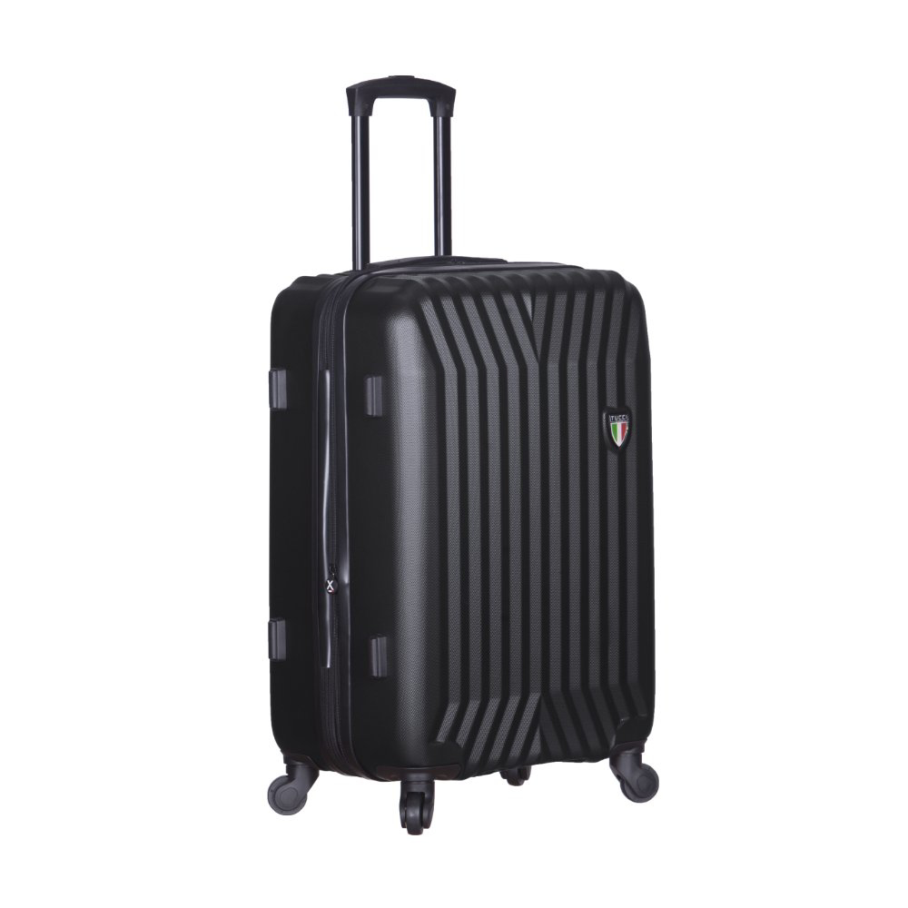 Walizka podróżna z kolekcji TUCCI Furbo, zamykana na zamek błyskawiczny. Oba suwaki mają oczka do wygodnego zamocowania zamka szyfrowego lub kluczowego. Górny i boczne uchwyty są plastikowe. Drugi zamek błyskawiczny może być użyty do zwiększenia wewnętrznej objętości walizki. Cały system rolkowy jest umieszczony wewnątrz walizki pod tekstylną podszewką, aby zapobiec uszkodzeniu systemu podczas transportu i jest wyposażony w cztery koła, które obracają się o 360 °. Walizka posiada lekki system wysuwny, wewnętrzną przegrodę i pasy zabezpieczające. Cena dotyczy 1 sztuki pokazanego rozmiaru M. - rozmiar M (średni) - materiał: ABS HARDSEHLL - elastyczny, lekki, odporny na zarysowania - ergonomiczna żelowa rączka - wymiary wewnętrzne: 59 x 41 x 26 cm - wymiary zewnętrzne: 67 x 45 x 27 cm = wymiary walizki wraz z kółkami i górnym uchwytem - objętość: 63 l / 85 l po rozszerzeniu - możliwość poszerzenia - objętość można zwiększyć nawet o 35% - waga: 3,4 kg - zalecana ładowność 20 kg - system wysuwanych kółek - 4 kółka dla dużego komfortu użytkowania, obracane o 360° - 10 lat gwarancji