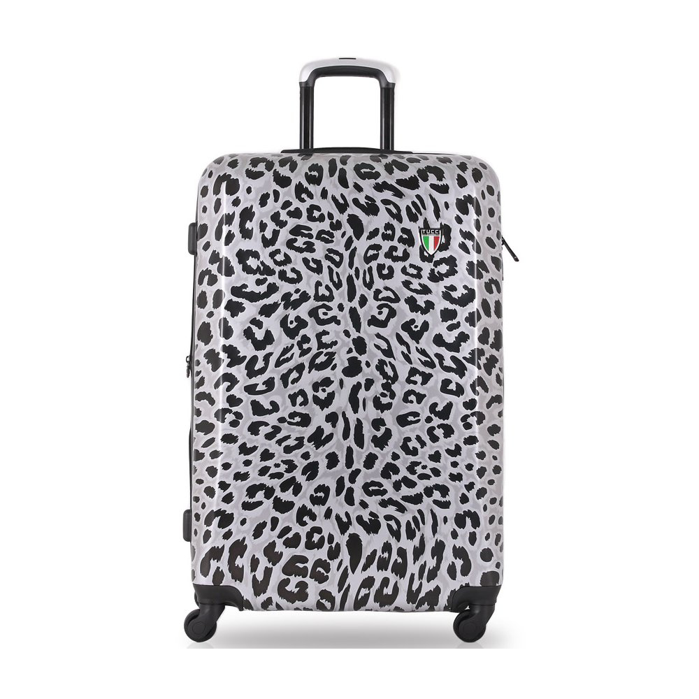 Walizka podróżna TUCCI Winter Leopard to wyjątkowa kolekcja walizek Winter Leopard wykonana z połączenia technologii, sztuki i wysokiej jakości materiałów. Walizka posiada zamknięcie na zamek błyskawiczny. Oba suwaki mają oczka do wygodnego zamocowania zamka szyfrowego lub kluczowego. Drugi zamek błyskawiczny można wykorzystać do zwiększenia objętości wnętrza walizki. Boczne i górne uchwyty są plastikowe. Walizka jest wyposażona w lekki wysuwany system, przegrodę na pokrywę i wewnętrzne kieszenie. Cały system jezdny jest umieszczony wewnątrz walizki pod podszewką z tkaniny, aby zapobiec uszkodzeniu systemu podczas transportu i jest wyposażony w cztery obrotowe kółka 360 °. Cena dotyczy 1 sztuki pokazanego rozmiaru L. - Rozmiar L (duży) - Materiał: ABS HARDSEHLL - Elastyczny, lekki, odporny na zarysowania - Unikalna konstrukcja - Ergonomiczny żelowy uchwyt (rączka) - Wymiar wewnętrzny: 69 x 47 x 27 cm - Wymiar zewnętrzny: 76 x 50 x 28 cm = Wymiary walizki łącznie z kółkami i górnym uchwytem - Pojemność: 88 l / 119 l po rozszerzeniu - waga: 4,4 kg - zalecana nośność 25 kg - możliwość rozszerzenia - objętość można zwiększyć nawet o 35% - system wysuwny - 4 kółka Glide-tech zapewniające duży komfort użytkowania, obracane o 360° - 10 lat gwarancji